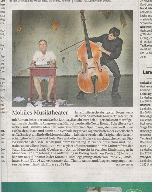 Diese Produktion tourt anschließend in den sozialen Einrichtungen Münchens und Umgebung.