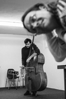die Stephan Lanius auf dem Kontrabass zum Besten gibt.